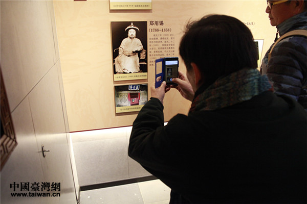 《臺灣導(dǎo)報》副社長吳惠民在會館拍攝鄭用錫位于臺灣新竹進(jìn)士第的照片。他表示回去將去新竹去看看。(中國臺灣網(wǎng) 郜利敏 攝)
