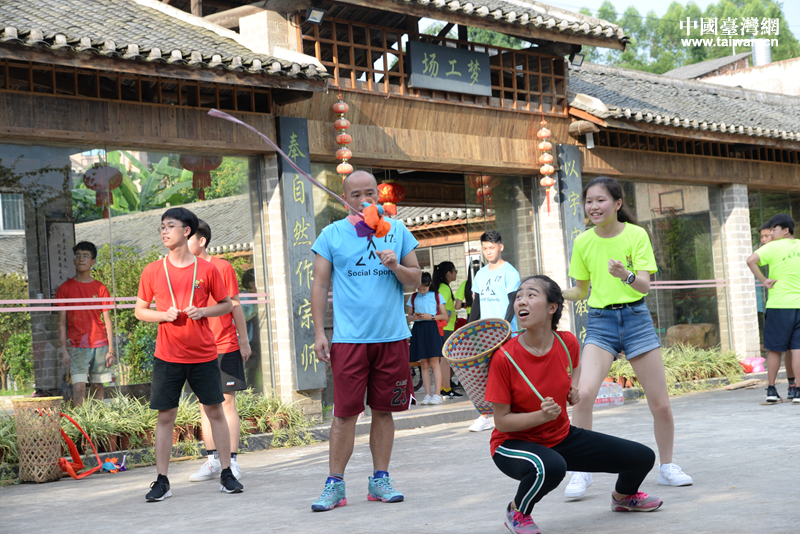 體驗(yàn)少數(shù)民族傳統(tǒng)體育競技——拋繡球。(圖片來源:廣西賀州市臺辦)