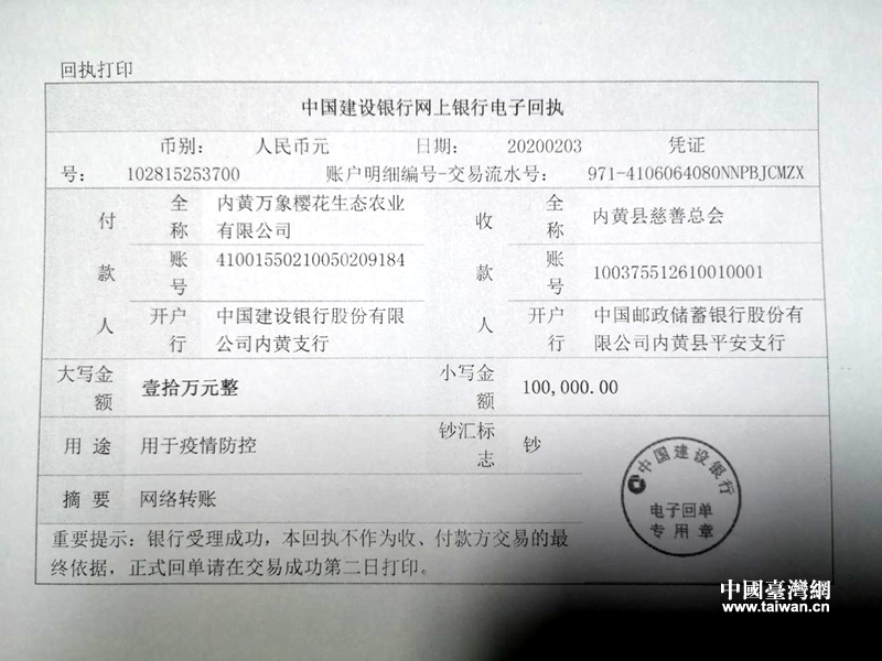 銀行電子回執(圖片來源:安陽市臺辦)