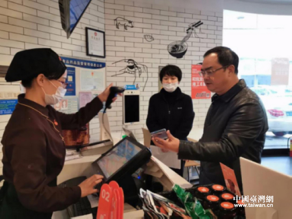 中國臺灣網4月3日訊 4月2日12時,位于長沙市長島路的臺資企業長沙羅莎食品有限公司旗下的羅莎臺北豆漿餐飲店迎來了10多位特殊的客人。在接受體溫檢查后,他們各自點單并通過微信掃碼使用消費券付款。