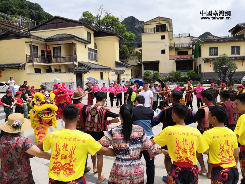 兩地鄉(xiāng)親拉手圍同心圓共跳同心舞(圖片來(lái)源:廣西桂林市臺(tái)辦)