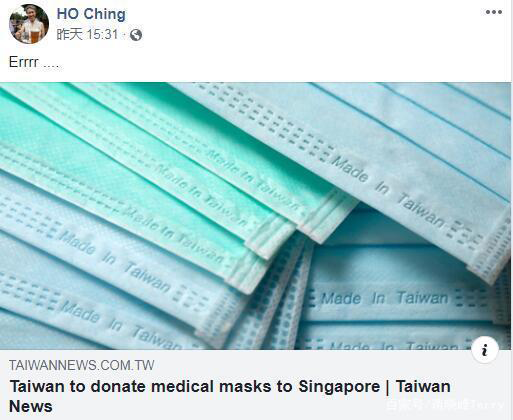 我們都知道,民進黨當(dāng)局宣布捐贈1000萬個口罩給歐美地區(qū)后,又在日前表示將再捐贈100多萬個口罩給所謂的“新南向”地區(qū),新加坡也在捐贈范圍之內(nèi)。然而,新加坡總理夫人何晶11日在個人臉譜賬號上轉(zhuǎn)發(fā)臺灣擬捐贈口罩的新聞時,評論了這樣一個字“Errr…”(呃…)。此舉被一些臺灣網(wǎng)軍視為“不領(lǐng)情”,何晶很快被群起而攻之。她臉譜賬號的每一條貼文下面都被洗版,臺灣網(wǎng)軍使用了大量負面語言去攻擊她,說她忘恩負義,不懂“感恩”;有的甚至上升到對她的人身攻擊,或者攻擊新加坡這個國家;還有人稱,應(yīng)該把口罩要回來送給美國,甚至要求何晶“向臺灣道歉”。