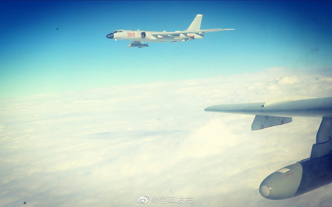 日前,解放軍轟-6K攜帶導彈飛行。(圖片來源:@空軍發布)