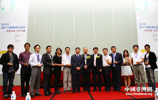 9月6日上午,2010年兩岸互聯(lián)網(wǎng)發(fā)展論壇在臺(tái)北舉行。作為論壇的重要環(huán)節(jié)之一,首屆兩岸互動(dòng)數(shù)字娛樂設(shè)計(jì)大賽在論壇現(xiàn)場隆重頒獎(jiǎng)。(中國臺(tái)灣網(wǎng)發(fā) 徐麗華 攝)