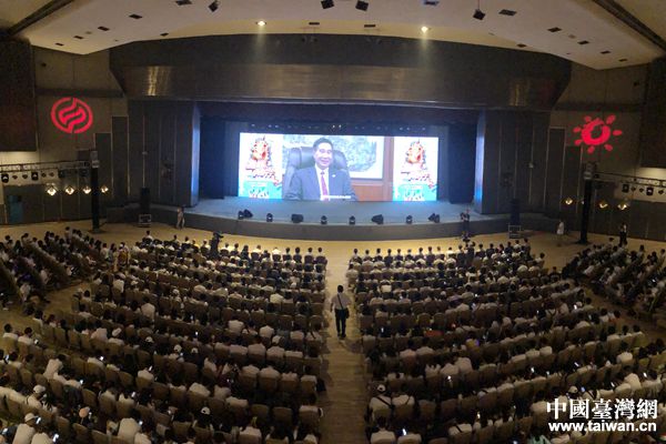 近千名臺胞青年參加夏令營開營儀式并接受全國臺聯會長黃志賢視頻祝福。(全國臺聯 易靖茗 攝)