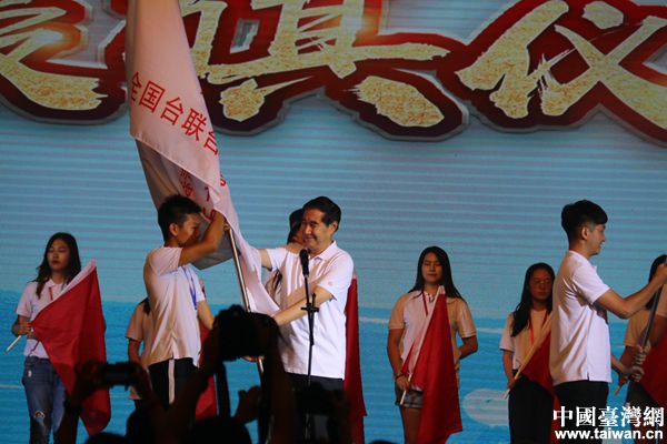 全國臺聯黨組書記、會長黃志賢授夏令營總營旗。(全國臺聯 易靖茗 攝)