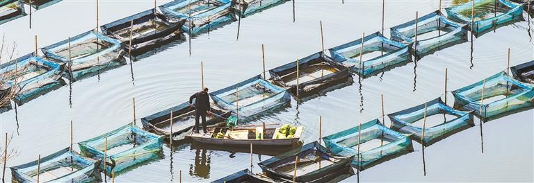 12月16日,蟹農在山東省濟寧市微山縣和合漁村養蟹基地捕撈螃蟹。當地實施蝦蟹混養、蟹魚混養等生態養殖方式,大閘蟹產業年產值近20億元。